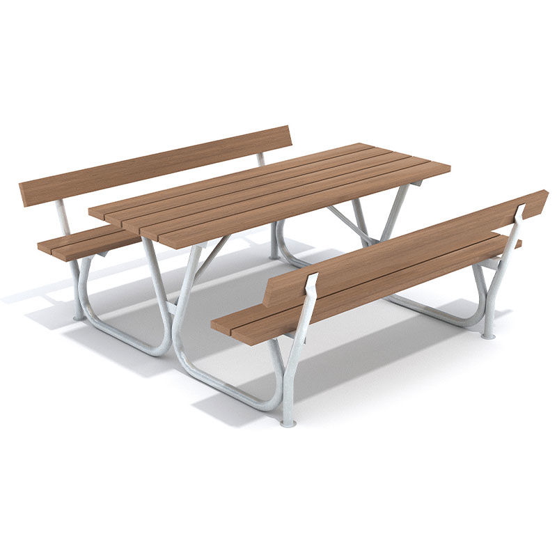 Benkebordet er et lettplassert utemøbel i naturlasert furu. Behandlet med trebeskyttelsesmiddel og lasert med en trippelbehandling for best mulig beskyttelse. Varmforsinket stålramme av kraftige rør og ekstra stag sørger for at bordet står stødig. Et benkebord med ryggstøtte som passer like godt for bedrifter som i offentlige miljøer. Lett å vedlikeholde og rengjøre.