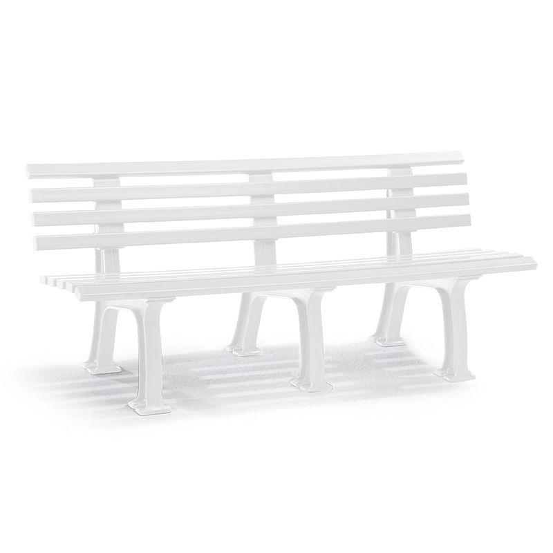 Parkbenk Ropi 9, HxB 740x2000 mm, hvit. Parkbenk med ribber i PVC. Produsert i UV- og værbestangig plast, lett å vedlikeholde. Sitte- og ryggribber i PVC, 50x30 mm. Ben i polypropylen. Kan boltes fast. Leveres umontert, enkel å montere.