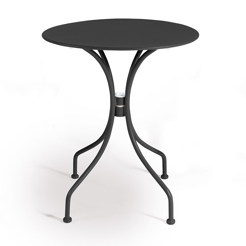 Cafebord Anna, diameter 600 mm, svart. Det perfekte alternativet for mindre uteplasser. Bordet har lakkert stålstativ og bordplate i stål. Kan kombineres med flere typer stoler.