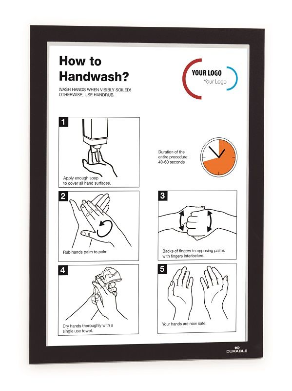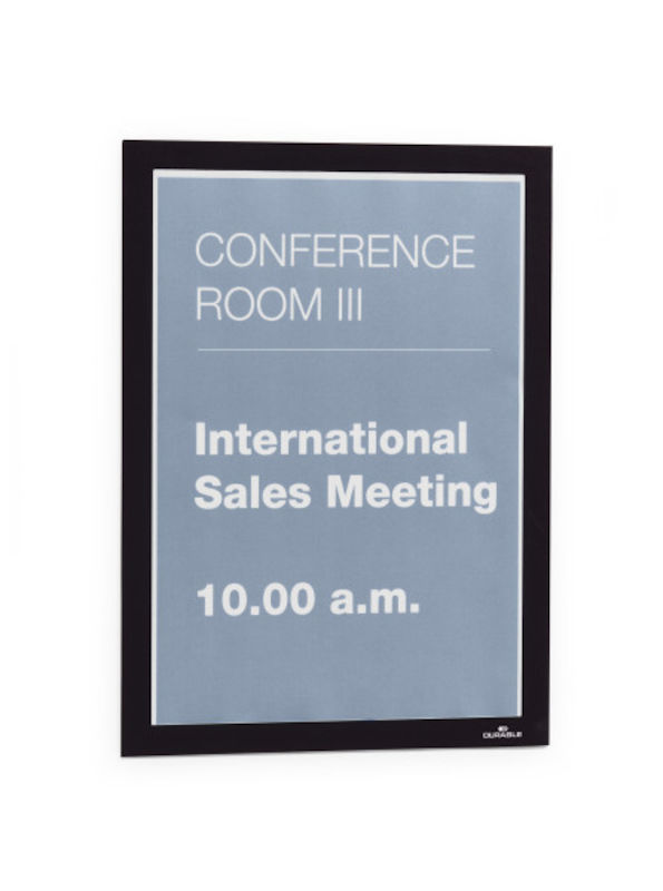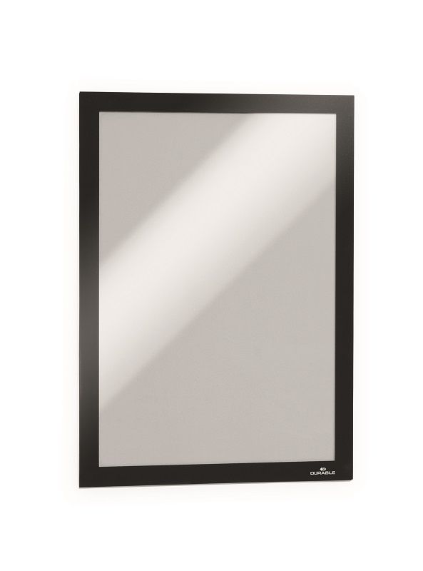 Magnetramme DURAFRAME®, selvklebende, A4, svart, viser og presenterer skilt, åpningstider, kampanjer eller tilbud på en elegant og profesjonell måte. Hurtig å installere og enkelt å skifte ut innholdet takket være den magnetiske rammen. Lett å sette opp på alle harde og glatte overflater, velegnet til bruk på glass og kan lese fra begge sider og har identisk farge på begge sider. Kan fjernes fra glass uten å etterlate noe limspor og kan brukes liggende eller stående. Til informasjon i A4 format. Yttermål: 236x323 mm. 10-pk.