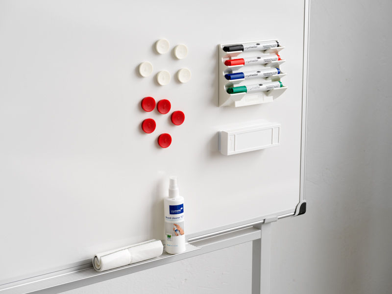 Whiteboard Viva, glassemaljert, BxH 600x450 mm, til daglig bruk. Skrivetavle i magnetisk glassemaljert stål. Ramme i naturanodisert aluminium. Kan monteres både liggende og stående. Leveres med pennehylle i aluminium (dybde 50 mm). 15 års garanti. Vi anbefaler å bruke rengjøringsspray for whiteboards for å rengjøre overflaten.