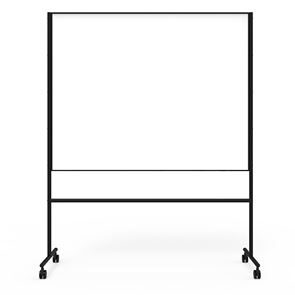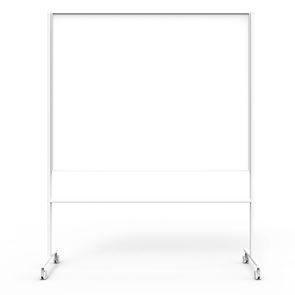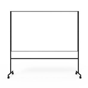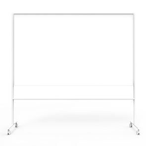 Stilren whiteboardtavle med stabilt understell i lakkert stål, utstyrt med tverrstag for ekstra stabilitet og svingbare hjul, hvorav to er låsbare. Baksiden av de enkeltsidige skrivetavlene er lakkert, noe som gjør at de passer i alle miljøer.