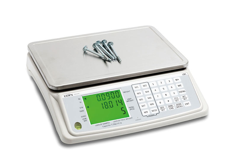 Regnevekt LBC, kapasitet 30 kg, gradering 1 g. Full regnefunksjon, automatisk presisjonsoptimeringsfunksjon og 1 200 000 interne delinger. Mange vektenheter. Plattform i rustfritt stål. Oppladbare batterier.