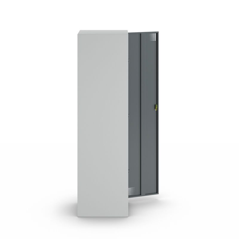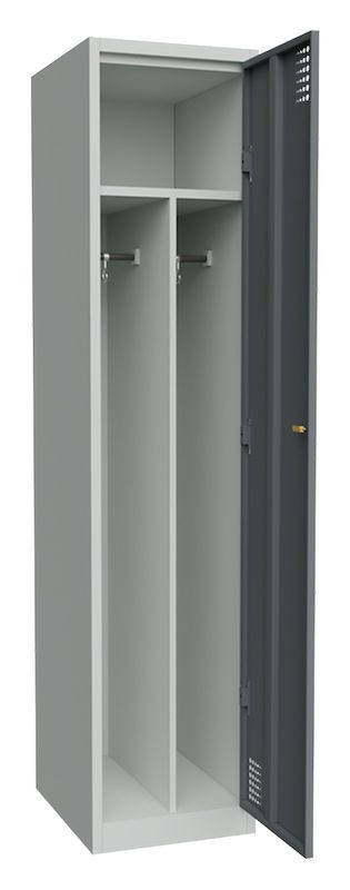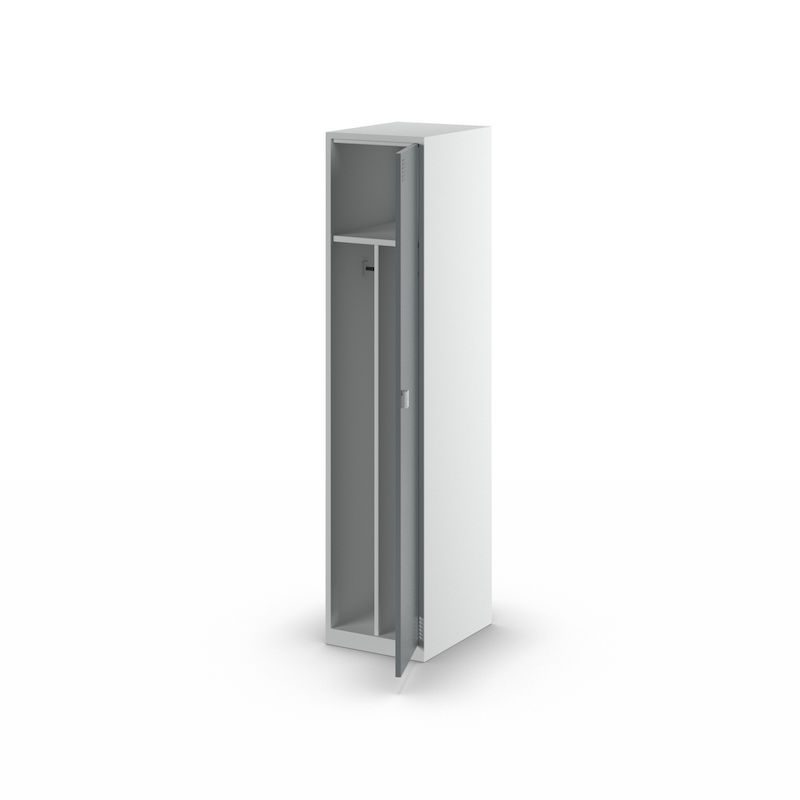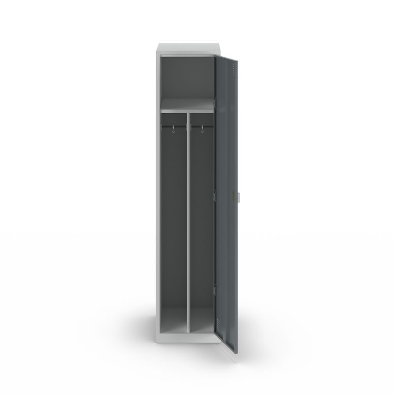 I tillegg til en praktisk hattehylle og to klesstenger med kroker, er Alvina stålskap også utstyrt med en midtvegg som gjør det mulig å skille mellom arbeids- og fritidsklær. Hullene i døren sørger for optimal ventilasjon av klærne dine.