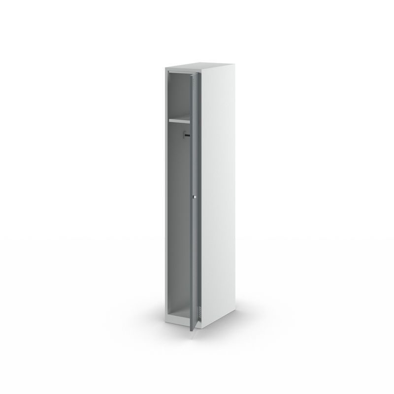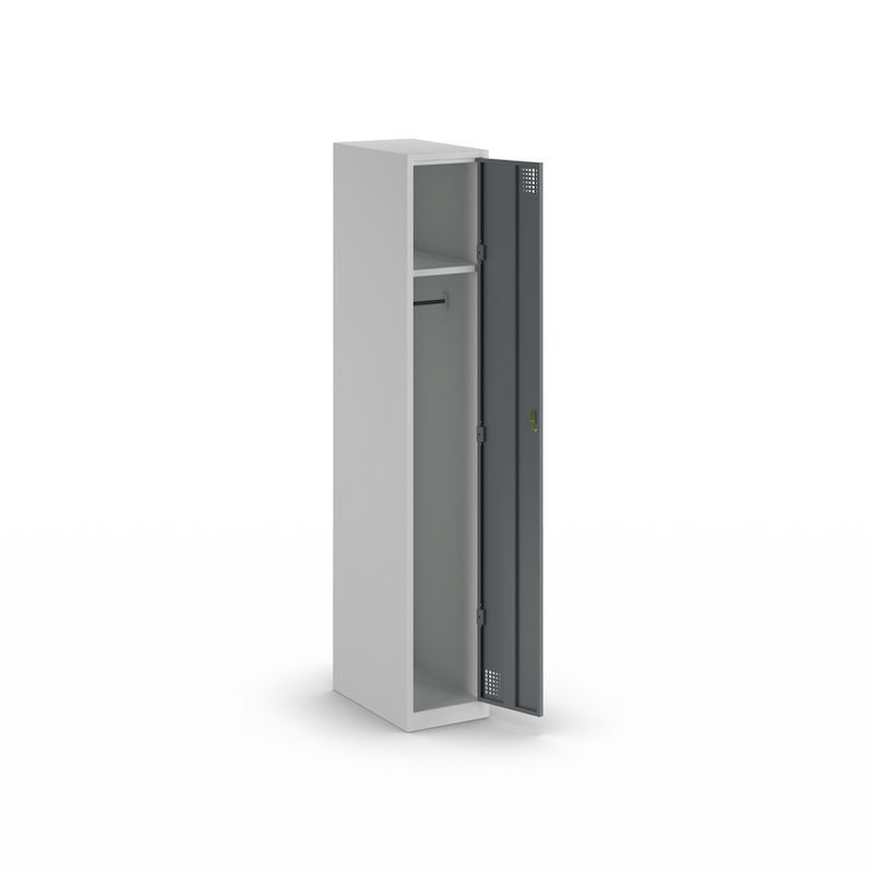 Garderobeskap Alvina, 1 seksjon, lysegrå / basaltgrå, bredde 300 mm, sylinderlås