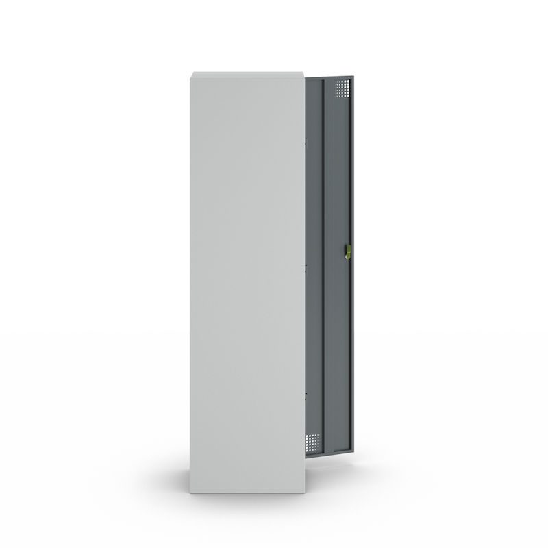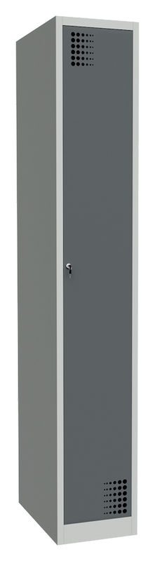 I tillegg til en praktisk hattehylle og en klesstang med kroker, er Alvina stålskap utstyrt med hullmønster i døren for å sikre optimal ventilasjon av klærne dine.