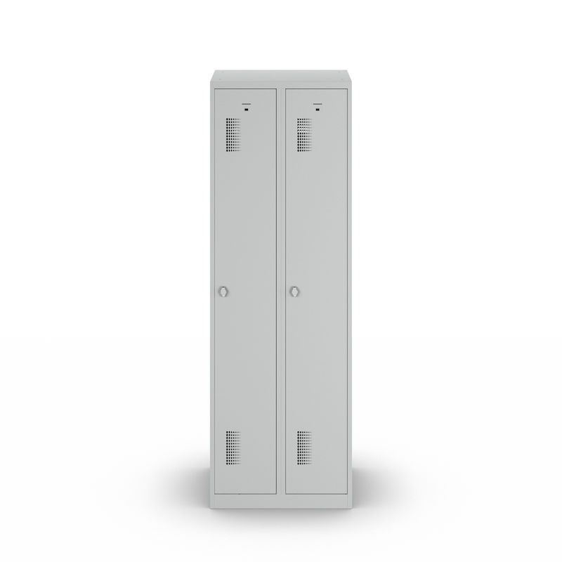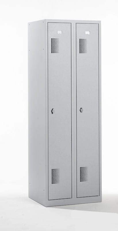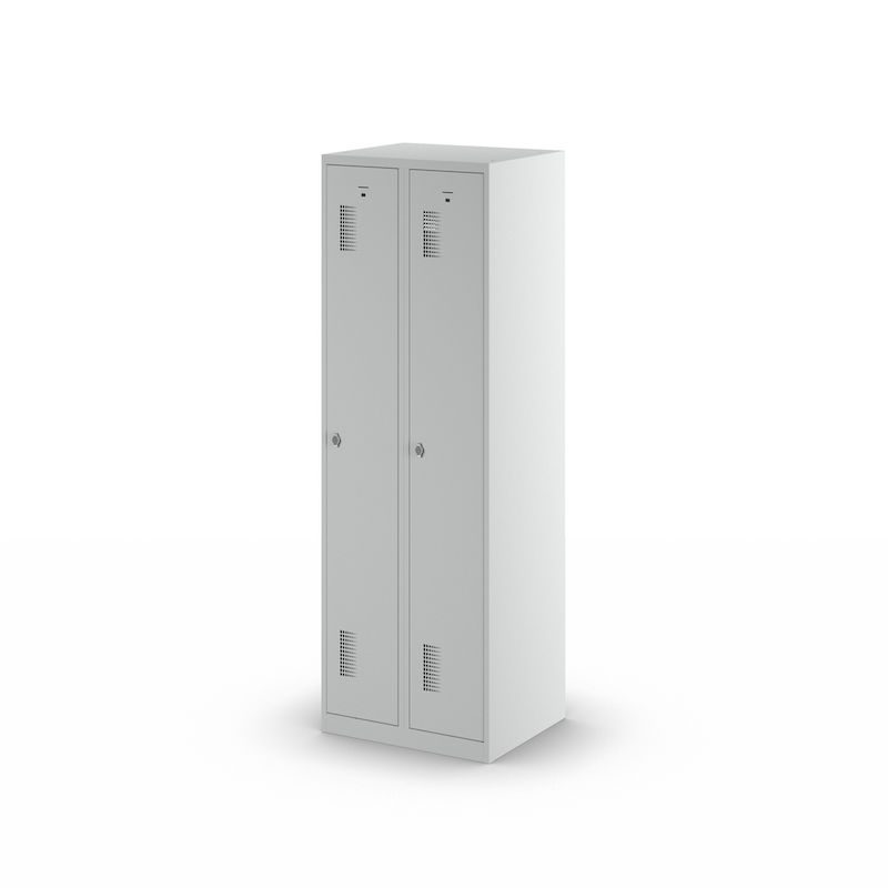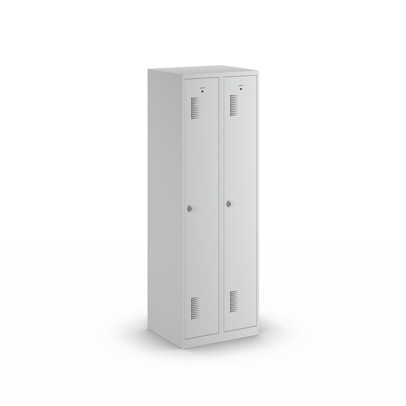 Garderobeskap Amsterdam, 2 seksjoner, lysegrå, bredde 600 mm, roterende låsebolt. Vårt robuste garderobeskap med lysegrå stamme er den ideelle løsningen for orden og sikkerhet.