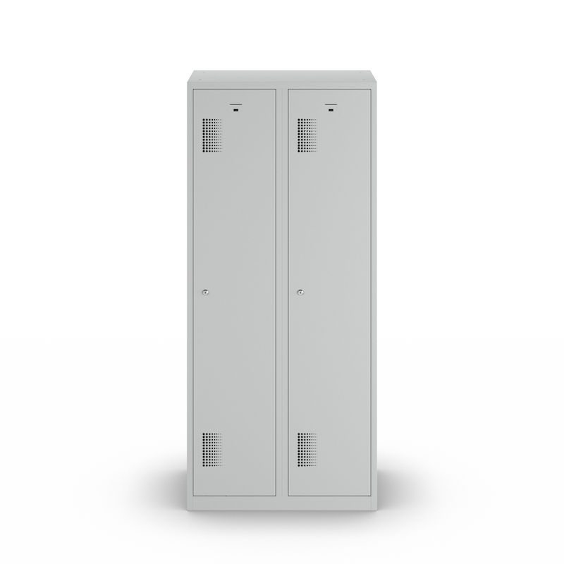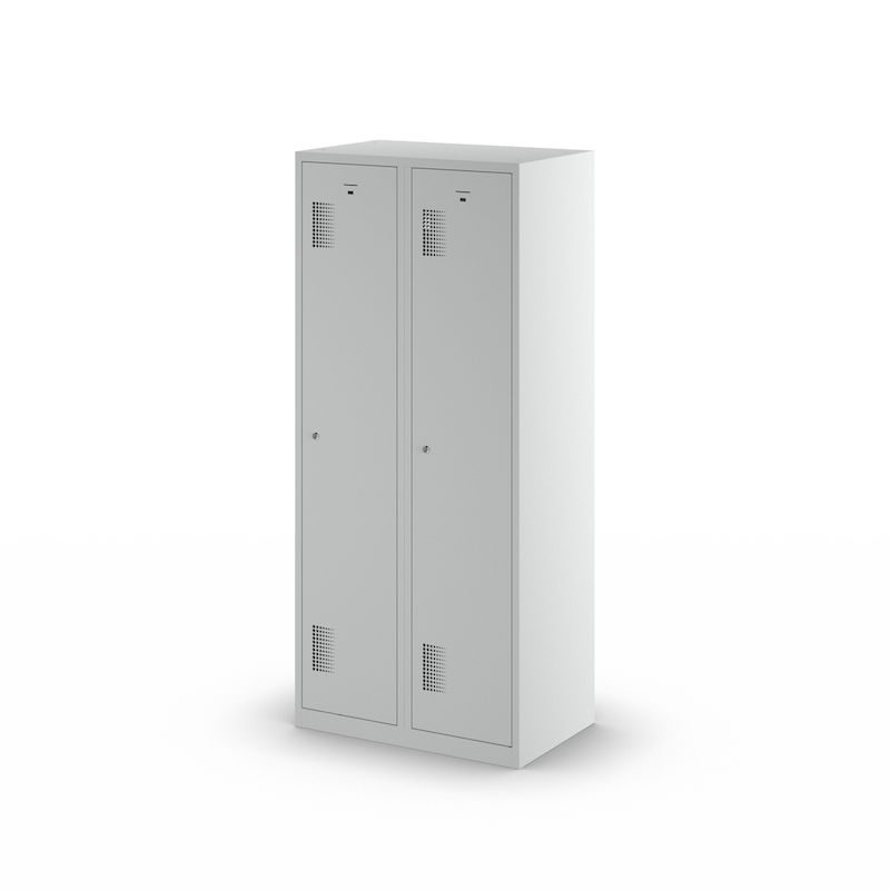 Garderobeskap Amsterdam, 2 seksjoner, lysegrå, bredde 800 mm, sylinderlås