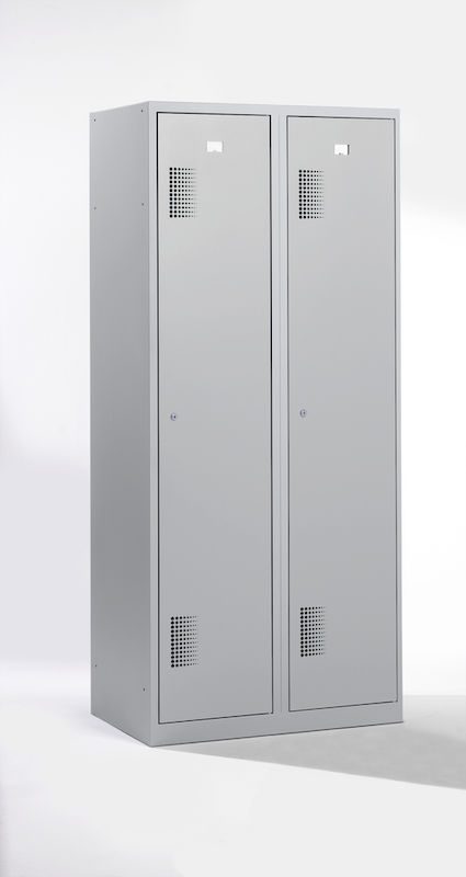 Garderobeskapet er tilgjengelig i forskjellige bredder og med forskjellig antall rom. Dørene med innvendige hengsler er tilgjengelige i forskjellige farger, noe som muliggjør individuell utforming. Valget mellom en sylinderlås eller en innretning for hengelås (bøyle tykkelse 6 – 8 mm) gir ekstra fleksibilitet og sikkerhet. Dørene er utstyrt med etikettfester (30 x 50 mm), etiketter er ikke inkludert i leveransen.