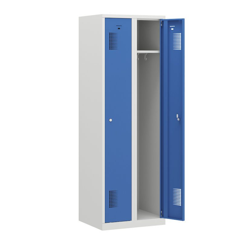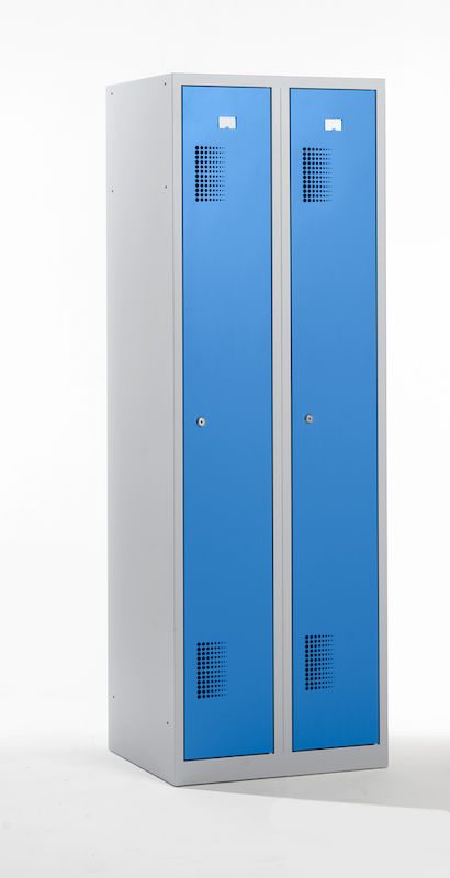Garderobeskap Amsterdam, 2 seksjoner, lysegrå / lyseblå, bredde 600 mm, sylinderlås. Vårt robuste garderobeskap med lysegrå stamme er den ideelle løsningen for orden og sikkerhet.