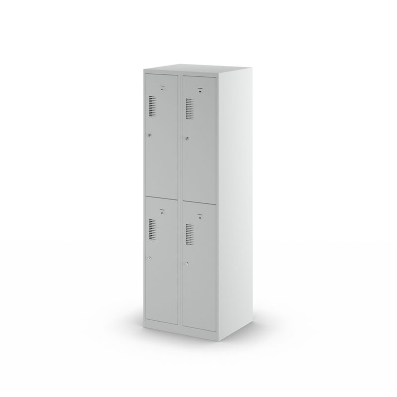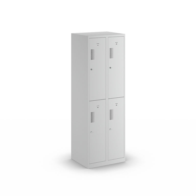 Garderobeskap med to etasjer Amsterdam, 2 seksjoner, bredde 600 mm, 4 rom, lysegrå.