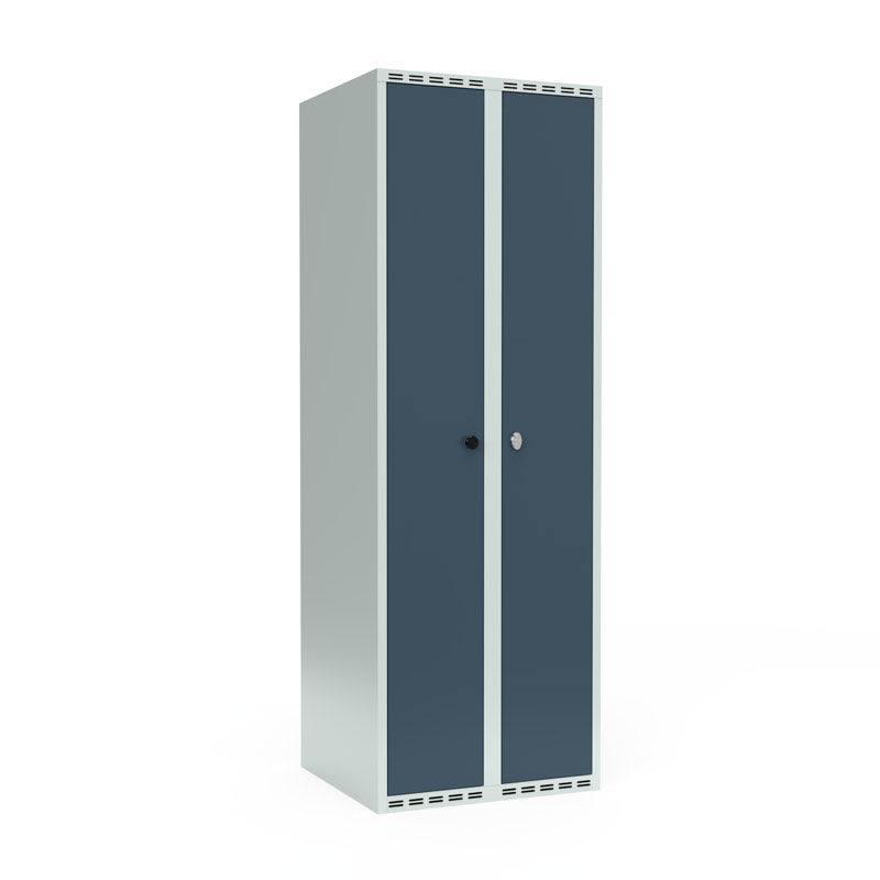 Når du har behov for å separere arbeidsklær fra private er klesskap med pardører en naturlig løsning. Klesskap med pardører gir deg to rom i full høyde med hattehylle og klesstang, men bara en lås for begge dørene. Klesskapene leveres med en kraftig klesstang med doble ankerkroker i hvert rom.