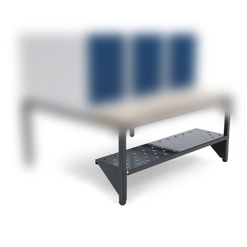 Skohylle Fydor, for skapbredde 900 mm, svart. Skohylle i perforert stål, finnes i flere størrelser. Passer til ben- og benkstativ.