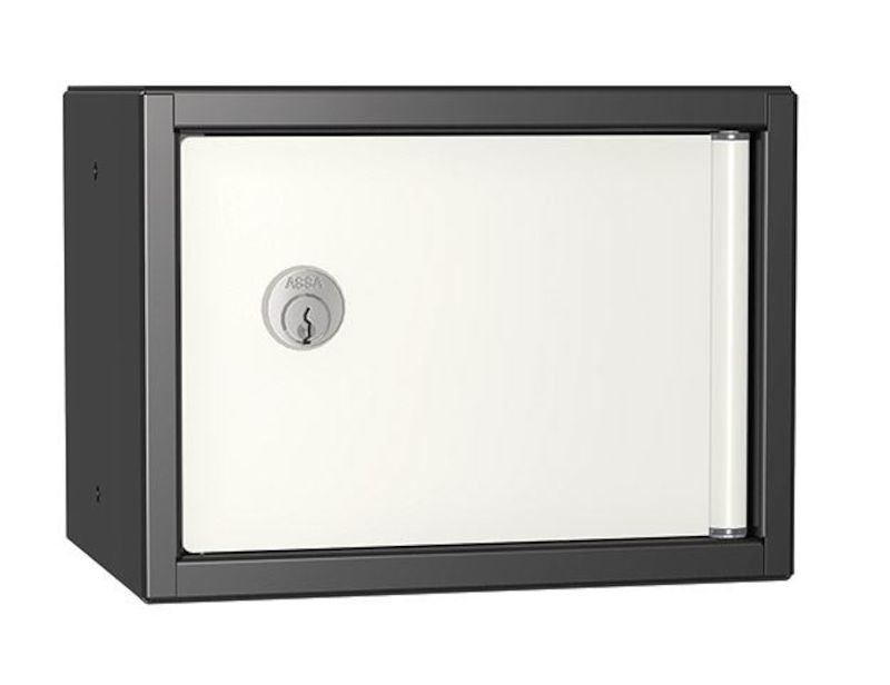 Småromsskap Sonesson Mini, BxDxH 200x150x150 mm, hvit dør/svart stamme. Skapet er produsert i kraftig stål. Døren innfelt med skjulte, kraftige hengsler, noe som vanskeliggjør innbrudd. ASSA-lås 8450. Skapmodulene har hull for å kunne bygges sammen. Noen vanlige kombinasjoner fås ferdig montert og kan siden bygges sammen. Monteres på vegg eller på sokkel. For å lette monteringen er skapet utstyrt med hull i gavler og rygg. Trenger du annen type lås? Kontakt oss på 67 80 56 20.