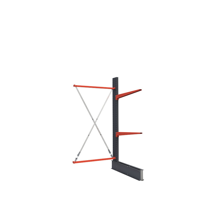Grenreoler Attillo, enkeltsidig, HxB 2500 x 1500 mm, arm 1000 mm, utbyggingsseksjon. Komplett reol med stolper, føtter, armer, lengde- og tverrforbindelser og betongskruer for forankring til gulvet.