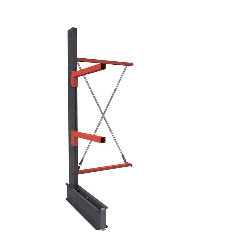 Grenreoler Igor, enkeltsidig, HxB 3000 x 1000 mm, avstand 2000 mm, utbyggingsseksjon. Komplett reol med stolper, føtter, armer, lengde- og tverrforbindelser og betongskruer for forankring til gulvet. Tilpasset lastekapasitet per støtte inkludert bunnbjelker.