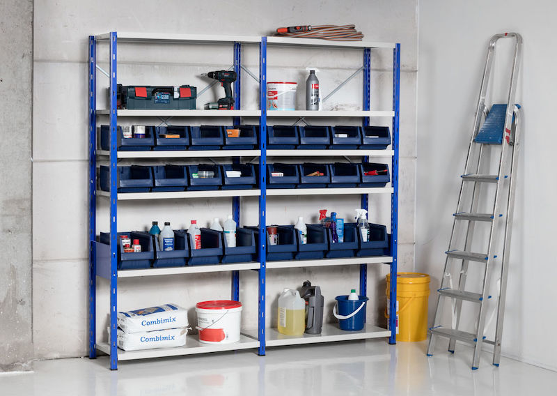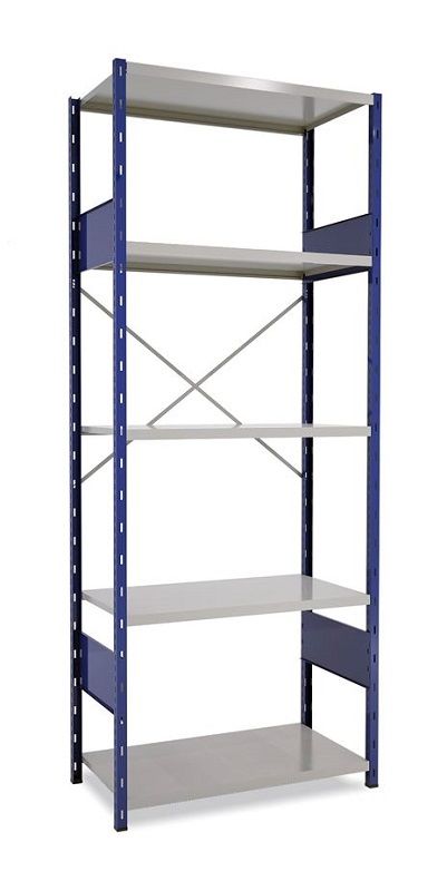 Lagerhylle Gerdmanshyllen, blå/grå, grunnseksjon, BxDxH 1000x500x2500, åpen. Belastning per hylleplate 150 kg, som enkelt kan oppgraderes til 225 kg og 1200 kg per seksjon Enkel montering, hylleplatene monteres enkelt med hyllehaker uten verktøy eller skruer. Kan innredes med skuffer, avdelere, verktøypaneler, dører m.m. Hyllen må forankres i vegg eller gulv Gulvbeskyttelse følger med. Fleksibelt hyllesystem. Du setter sammen hyllen med utgangspunkt i eget oppbevaringsbehov og lokalets utseende.