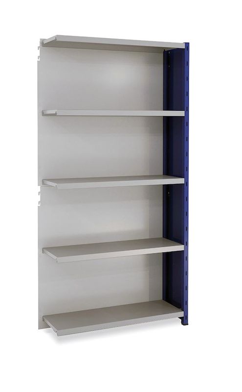 Lagerhylle Gerdmanshyllen, blå/grå, heldekkende gavler og rygg, grunnseksjon, BxDxH 1000x400x2500