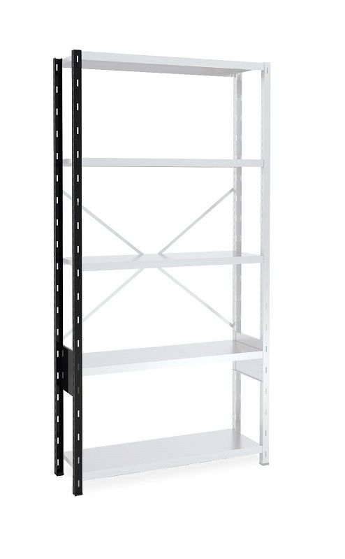 Gavlstige, svart, Gerdmanshyllen, H 1960 mm, D 300 mm. Består av to loddrette stolper, plastføtter og et gavlstag som forbinder stolpene. Til høyder på 2500 og 3000 mm trengs 2 gavlstag.