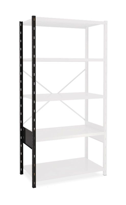 Gavlstige, svart, Gerdmanshyllen, H 1960 mm, D 500 mm. Består av to loddrette stolper, plastføtter og et gavlstag som forbinder stolpene. Til høyder på 2500 og 3000 mm trengs 2 gavlstag.