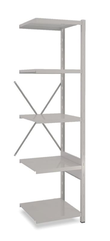 Lagerhylle Gerdmanshyllen, hvit/hvit, halvutbyggingsseksjon, BxDxH 500x500x1960, åpen. Fleksibelt hyllesystem. Belastning per hylleplate 150 kg, som enkelt kan oppgraderes til 225 kg og 1200 kg per seksjon. Enkel montering, hylleplatene monteres enkelt med hyllehaker uten verktøy eller skruer Kan innredes med skuffer, avdelere, verktøypaneler, dører m.m. Hyllen må forankres i vegg eller gulv, gulvbeskyttelse følger med. Sett sammen hyllen med utgangspunkt i eget oppbevaringsbehov og lokalets utseende.