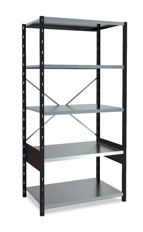Lagerhylle Gerdmanshyllen, svart/galvanisert, grunnseksjon, BxDxH 1000x600x1960, åpen, enkel montering. Belastning per hylleplate 150 kg, som enkelt kan oppgraderes til 225 kg og 1200 kg per seksjon. Hylleplatene monteres enkelt med hyllehaker uten verktøy eller skruer. Kan innredes med skuffer, avdelere, verktøypaneler, dører m.m. Hyllen må forankres i vegg eller gulv. Gulvbeskyttelse følger med. Fleksibelt hyllesystem. Du setter sammen hyllen med utgangspunkt i eget oppbevaringsbehov og lokalets utseende.