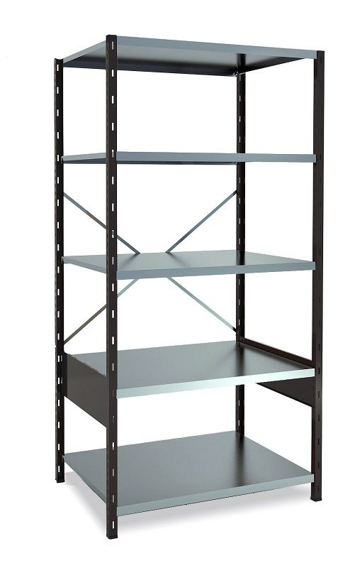 Lagerhylle Gerdmanshyllen, svart/galvanisert, grunnseksjon, BxDxH 1000x700x1960, åpen, enkel montering. Belastning per hylleplate 150 kg, som enkelt kan oppgraderes til 225 kg og 1200 kg per seksjon. Hylleplatene monteres enkelt med hyllehaker uten verktøy eller skruer. Kan innredes med skuffer, avdelere, verktøypaneler, dører m.m. Hyllen må forankres i vegg eller gulv. Gulvbeskyttelse følger med. Fleksibelt hyllesystem. Du setter sammen hyllen med utgangspunkt i eget oppbevaringsbehov og lokalets utseende.