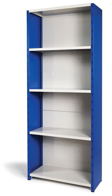 Lagerhylle Gerdmanshyllen, hvit/hvit, heldekkende gavler og rygg, utbyggingsseksjon, BxDxH 965x300x2500. Belastning per hylleplate 150 kg, som enkelt kan oppgraderes til 225 kg og 1200 kg per seksjon. Enkel montering, hylleplatene monteres enkelt med hyllehaker uten verktøy eller skruer. Kan innredes med skuffer, avdelere, verktøypaneler, dører m.m. Hyllen må forankres i vegg eller gulv. Gulvbeskyttelse følger med. Fleksibelt hyllesystem. Du setter sammen hyllen med utgangspunkt i eget oppbevaringsbehov og lokalets utseende.