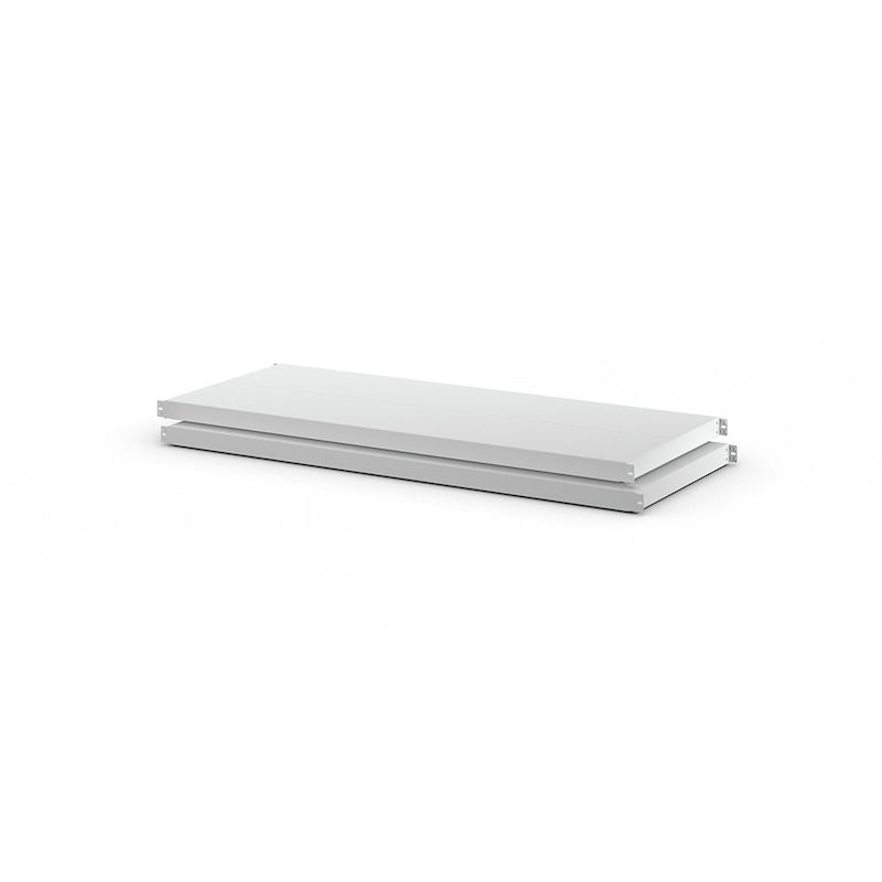 Hylleplater av stål, 2-pk Mark, dybde 590 mm, bredde 1442 mm. - Bredde: 1442 mm- Materiale: stålplate- Farge: lysegrå RAL 7035- Maks. last: 200 kg- Pk: 2 stk- Dybde: 590 mm- Vekt per stykk: 14.24 kg