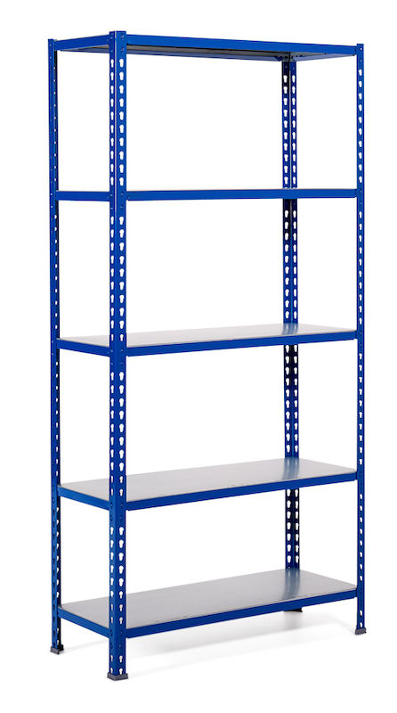 Lagerhylle Lokka, BxDxH 1000x300x2000 mm, 5 hylleplater, blå. Stabil stålhylle med galvaniserte hylleplater. Enkel å montere helt uten skruer og verktøy. Stabil industrihylle med belastning opptil 200 kg/hylleplate og 1850 kg/seksjon. Pulverlakkerte stolper og stag i enten blå (RAL 5010) eller grå (RAL 7016). Hyllen kan bygges som enkeltseksjon eller flere seksjoner med hjelp av koblingsplate. Hylleplatene er flyttbare hver 38. mm. Hyllen leveres komplett med hylleplater og gulvbeskyttelse. Hyllen bør festes i gulv eller vegg.