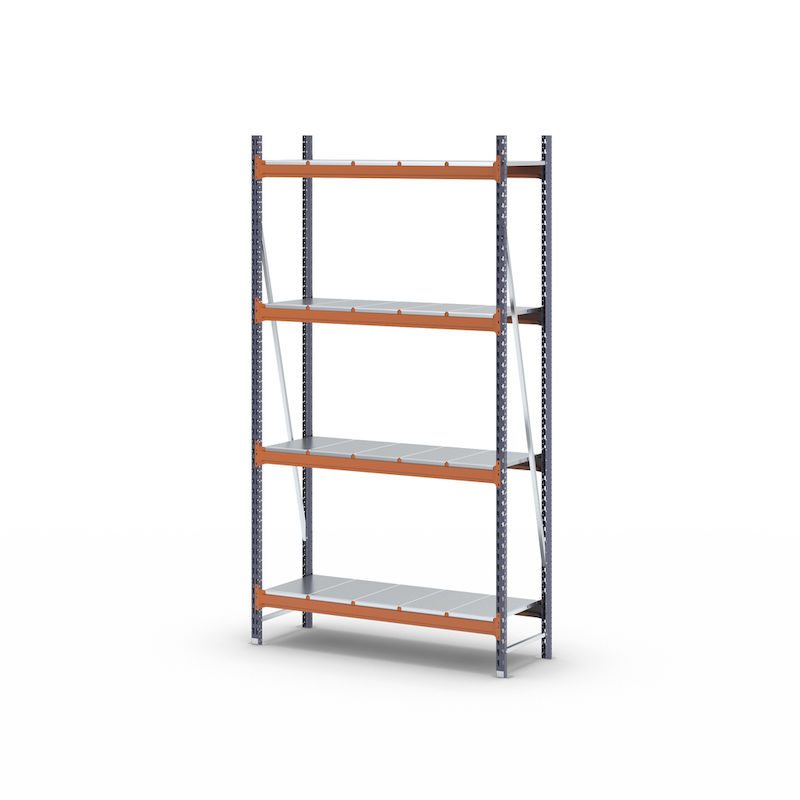 Lagerhyller for bred last Aleyna, belastning per seksjon 1600 kg, med hylleplater i stål, HxBxD 2500 x 1400 x 500 mm, grunnseksjon.