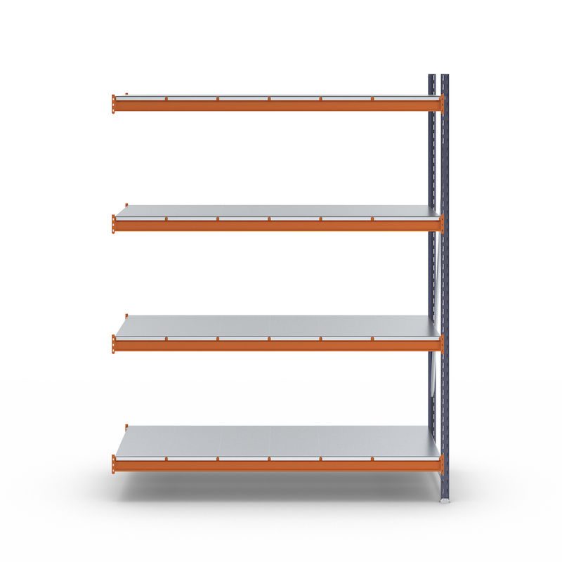 Lagerhyller for bred last Aleyna, belastning per seksjon 1600 kg, med hylleplater i stål, HxBxD 2500 x 1900 x 800 mm, utbyggingsseksjon.