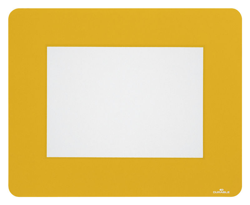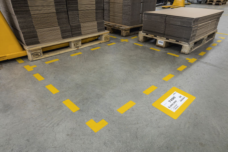 Den signalgule rammen sørger for en tydelig visuell avgrensning. Beskyttelsesfolien er lukket rundt hele og sørger for at papiret holder seg rent og lesbart. Takket være det fleksible limbåndet kan gulvmerkingen enkelt fjernes eller flyttes.