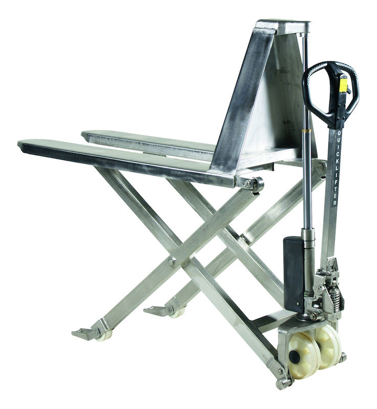 Fleksibel og praktisk løsning som både flytter og løfter gods til riktig ergonomisk arbeidshøyde. Egnet for bruk i fuktige miljøer, for eksempel i kjøtt-, meieri- og fiskeindustrien. Hurtigløfter som løfter med 40 mm per pumpeslag opp til 150 kg belastning og 20 mm ved tyngre last.