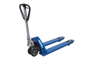 Jekketralle med Quicklift Lennon, hjul i massiv gummi og polyuretan, gaffellengde 1150 mm, fra 3 stk.. Jekketrallen med QuickLift eurokraft pro er produsert i Europa med flere tiårs erfaring, og står for høy kvalitet og lang levetid. Den ekstremt robuste konstruksjonen gir høy pålitelighet i det daglige arbeidet. Reservedelsforsyningen er garantert på lang sikt og suppleres av en 10-års garanti. Jekketrallen har et ergonomisk håndtak som gjør manøvreringen enkel og komfortabel. Takket være hurtigløft med QuickLift sparer du verdifull tid og energi når du løfter last. Pallen heves fra bakken etter 2 x pump, og den maksimale løftehøyden på 195 mm nås raskt etter bare 5 x pump. Konstruksjonen av høy kvalitet med en ramme av vridningsfritt stål og en sterk gaffel som er forsterket ved akselen, gjør denne jekketrallen med en lastekapasitet på 2300 kg ekstremt stabil. Håndteringen av europaller forenkles av uttrekkbare ruller ved gaffelspissene.