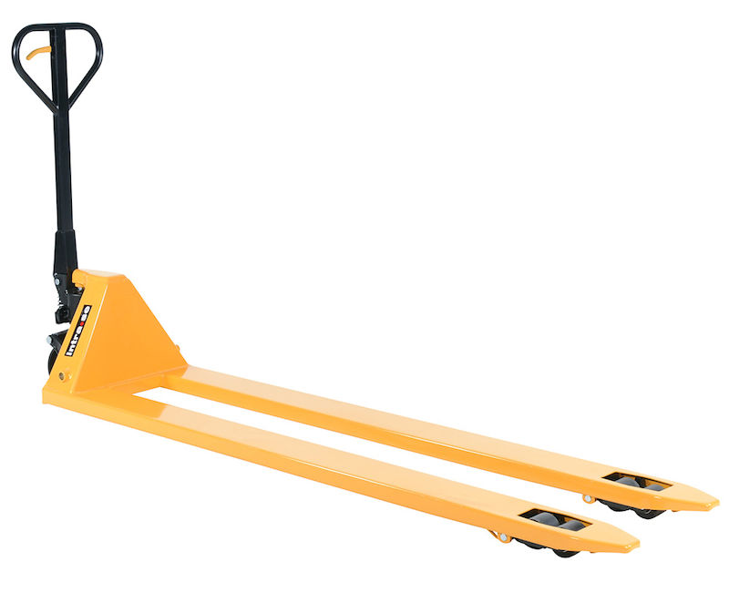 Jekketralle med lange gafler, gaffellengde 2000 mm, løftekapasitet 2000 kg. For håndtering av langt gods.