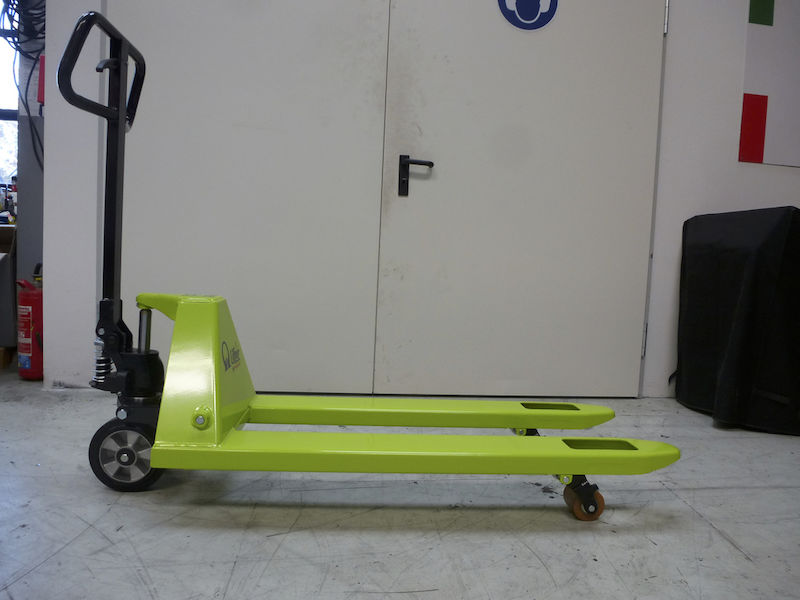 Jekketraller Pramac, hjul av massiv gummi med kjerne av aluminium, gaffellengde 1150 mm, singelhjul. En jekketralleserie i toppklasse. Behagelig jevn og stillegående. Singel- eller boggiehjul.