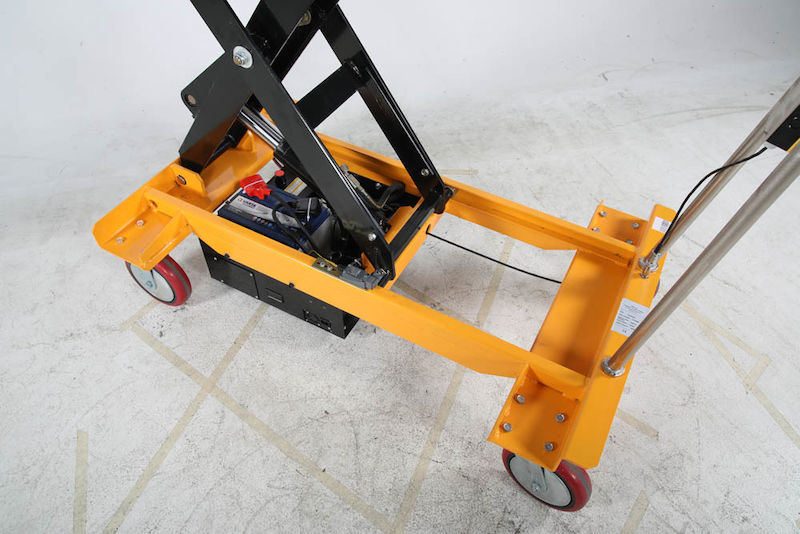 Løftebordvogn, LxB 1200x800 mm, elektrisk, kap. 1000 kg. Hydrauliske løftebordvogner heves med fotpumpe og senkes med håndregulering. Elektriske løftebordvogner heves og senkes med håndregulering. Batteri og lader følger med de elektriske. To faste og to svingbare hjul med brems. Fotbeskyttelse av platemetall på de svingbare hjulene. Oppfyller krav i henhold til EN 1570.