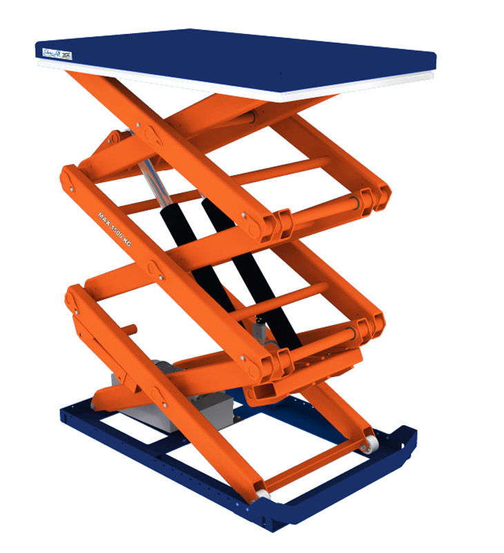 Løftebordene er hydrauliske og utstyrt med elektrisk drevet tilbakeslagsventil, senkehastigheten er alltid den samme uansett last. Klembeskyttelsesrammen på bordets underside er justerbar og høysensitiv, forhindrer at bordet senkes om noen kommer i klemme under det.