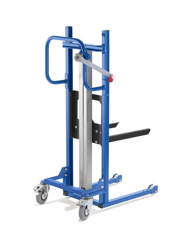 Stabler, manuell med sveiv Ludvig. Stabler med forskjellige lasthåndteringsutstyr for mange bruksområder. Lastens tyngdepunkt er 300 mm. Bringer materialer eller verktøy til ideell arbeidshøyde. Kan flyttes med 2 svingbare hjul med bremser og 2 gaffelruller eller med 4-veis tralle. Løftebevegelse ved hjelp av selvlåsende sikkerhetsvinsj og presisjonsrullkjede.