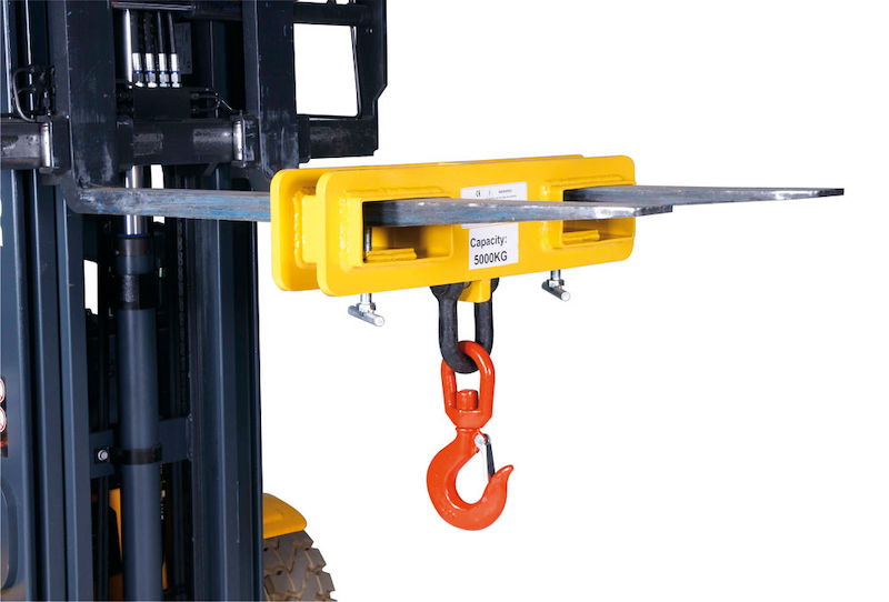 Kraftig løfteblokk for truckgafler. Gjør raskt om en gaffeltruck til en mobilkran.