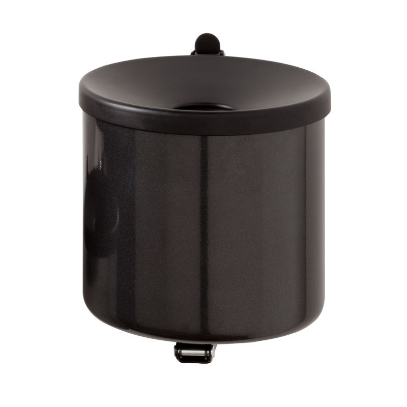 Askebeger, vegghengt med vippetømming, Ø 150 mm, antrasitt. Robust veggaskeberger med enkel tømming. Det traktformede lokket får avfallet til å gli ned i beholderen. Den lille åpningen i lokket minsker oksygentilførselen og reduserer dermed lukt og flammer.