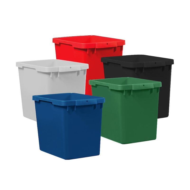 Gjenvinningsbeholdere med volum på 25 liter. Finnes i flere farger.