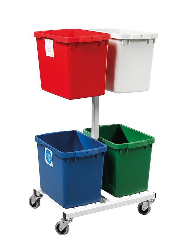Bærbare gjenvinningsbeholdere som er veldig slitesterke. Slitesterk plast som tåler daglig bruk på kontor og arbeidsplasser. Beholderne er utformet slik at de også passer til sorteringsvogn.