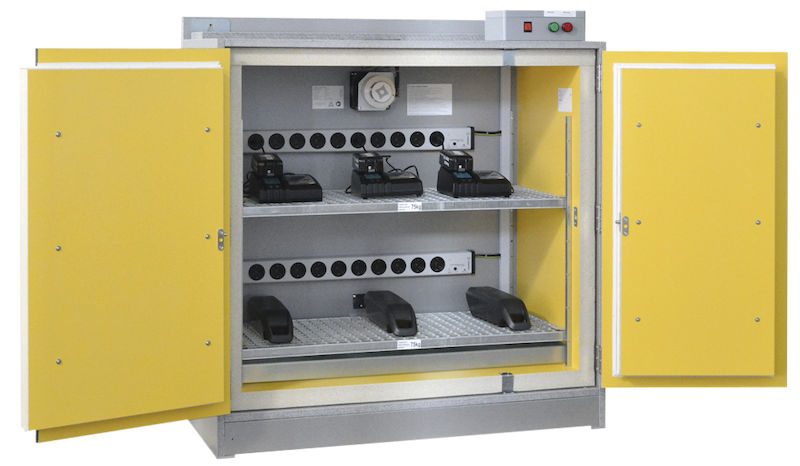 Sikkerhetsskap Beata, uten brannslokkingssystem, HxB 1222 x 1148 mm, 2 grenuttak. LaCont batteriskapet LI-ION Basic Charge EI 90 er den perfekte startmodellen for