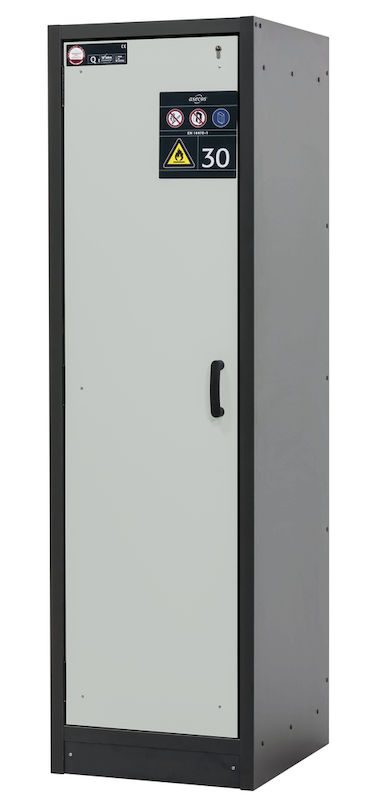 Kjemikalieskap, brannsikkert, type 30 Arby, HxBxD 1947 x 564 x 620 mm, med 1 dør. Det brannsikre skapet for farlige materialer type 30 fra asecos gir pålitelig beskyttelse for forskriftsmessig oppbevaring av brennbare medier i arbeidsrom. Dette typetestede og brannbeskyttelsestestede sikkerhetsskapet med en brannmotstand på 30 minutter oppfyller alle forskrifter i henhold til DIN EN 14470-1 og TRGS 510, vedlegg 3 (type 30) og DIN EN 16121/16122.