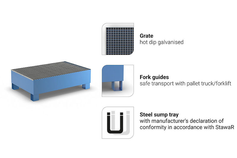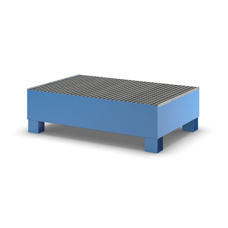 Oppsamlingskar Moa, LxBxH 1200 x 800 x 360 mm, med godkjenning, blå pulverlakkert, med gitterbunn.