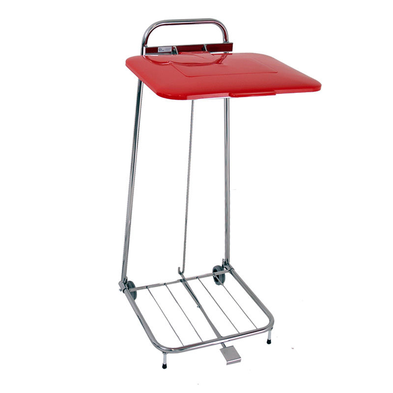 Søppelsekkstativ med lokk, fotpedal, 2 hjul, 60 liter, rødt lokk