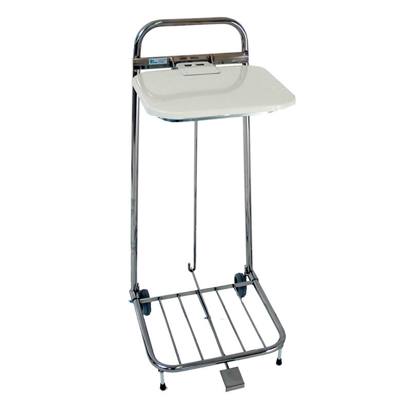 Søppelsekkstativ med lokk, 2 eller 4 hjul. Modeller med eller uten fotpedal. Leveres i to størrelser, 60 eller 125 liter.