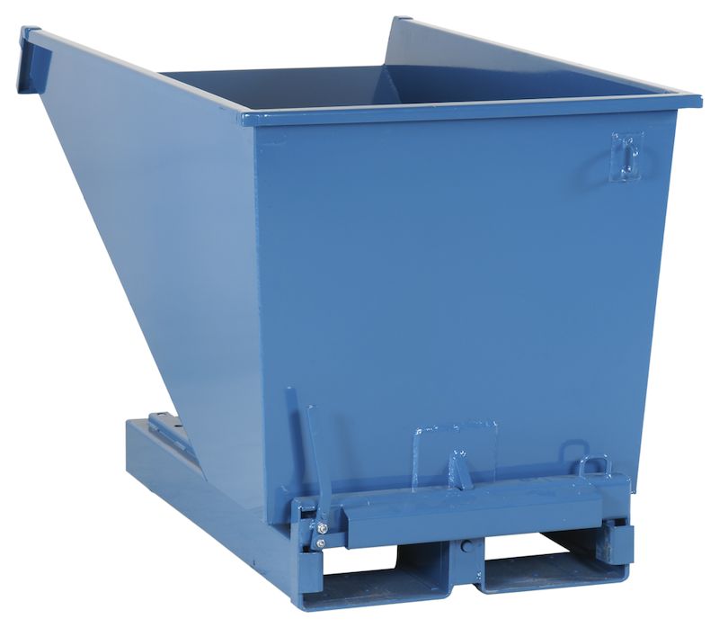 Lettmanøvrert og fleksibel container med styring av godset under tipping takket være den brutte fronten som gir støtte til godset. Hjørnene på fronten er forsterket med vinkelprofiler.